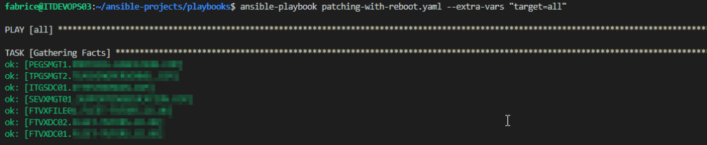 Probably it is very self explanatory, but it tells Ansible to run agains “all” nodes a “-m” (module), which is in our case the “win_ping”, which is a module that does not just do an icmp echo, like the normal ping, but actually verifies, if the Windows-host is connectable, via the defined method (in our case Kerberos via WinRM).
