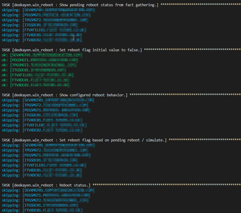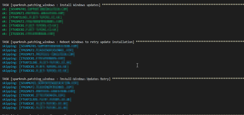 It is quite basic – I am just getting the hang of it, allow me – also I would not recommend this in production environments. It is basically doing a Windows patching (subject of any pending updates), then, if the patching requires it, reboots the system.
