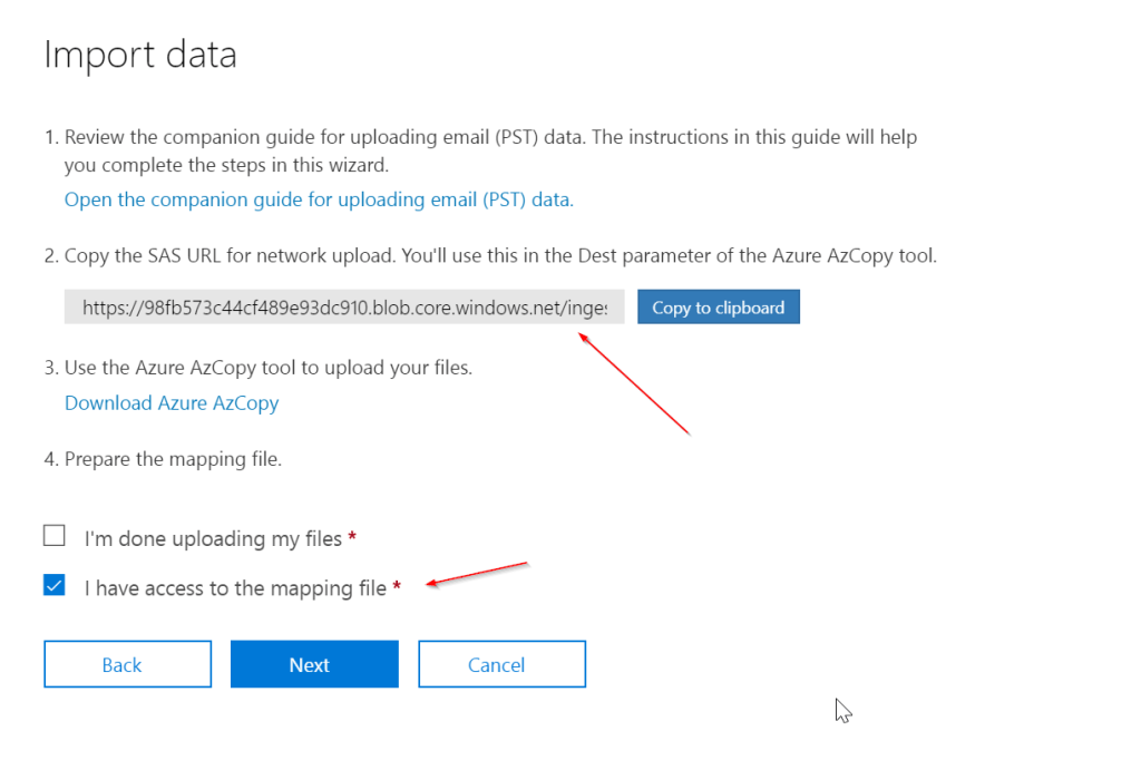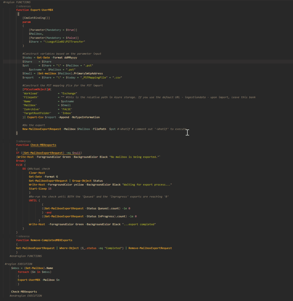 - We would then export the .pst files from the on-prem Exchange server for each user to a shared drive