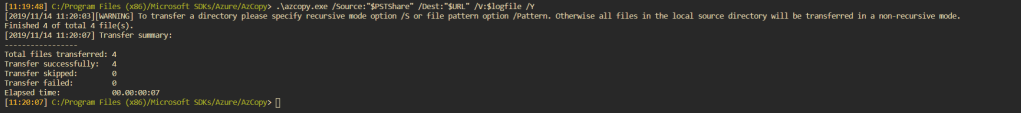 - First we install AzCopy. Then we go to it’s install folder. (by default: C:\Program Files (x86)\Microsoft SDKs\Azure\AzCopy\)