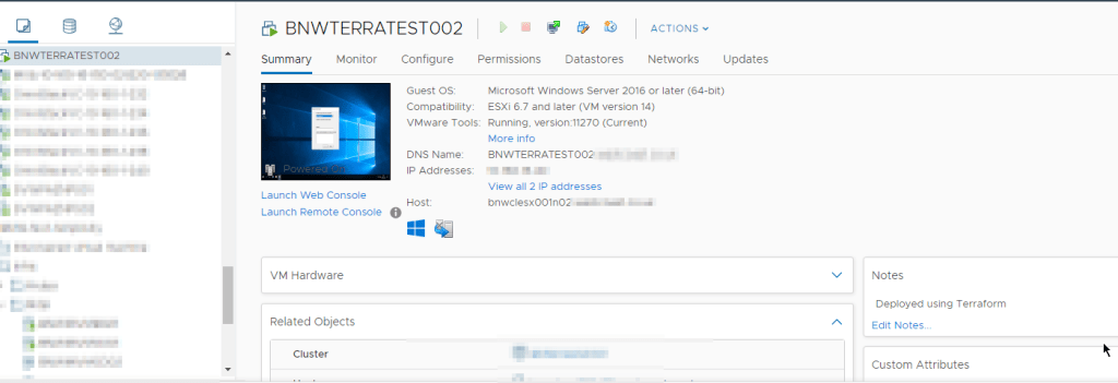 The biggest caveat I found during the process: Terraform (or the VMWare provider) is extra sensitive about the version of VMware tools – used for the customization. One would imagine 11.0.1 is still OK to use even though the latest version is 11.0.6. Well, not really. I could not copy VM-s that were below this. True, in the cluster I worked there was no 11.0.5 version, so I can’t say if only the latest or only the latest few versions are acceptable. But I can say 11.0.1 was instantly killing my pipeline.